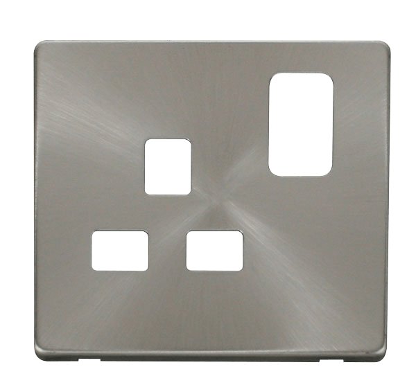 Click Definity 1 Gang 13A Switched Socket Cover Plate Brushed Stainless