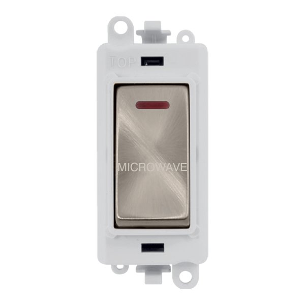 Click GridPro 20Ax Double Pole Switch With Led Module Polar White Brushed Stainless Microwave