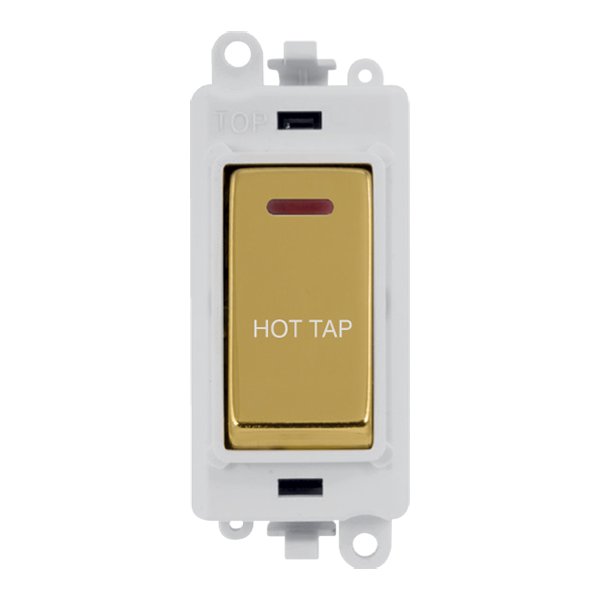 Click GridPro 20Ax Double Pole Switch With Led Module Polar White Polished Brass Hot Tap