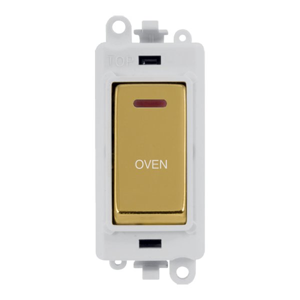 Click GridPro 20Ax Double Pole Switch With Led Module Polar White Polished Brass Oven