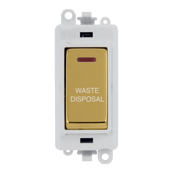 Click GridPro 20Ax Double Pole Switch With Led Module Polar White Polished Brass Waste Disposal