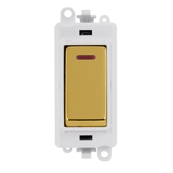 Click GridPro 20Ax Double Pole Switch With Led Module Polar White Polished Brass