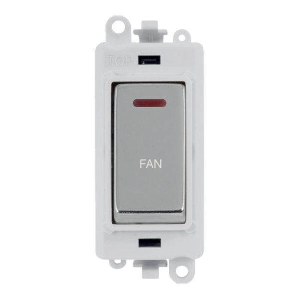 Click GridPro 20Ax Double Pole Switch With Led Module Polar White Polished Chrome Fan