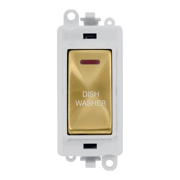 Click GridPro 20Ax Double Pole Switch With Led Module Polar White Satin Brass Dishwasher
