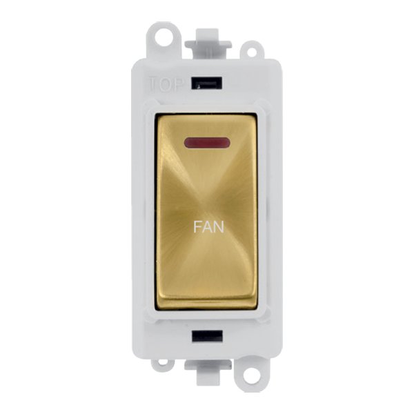 Click GridPro 20Ax Double Pole Switch With Led Module Polar White Satin Brass Fan