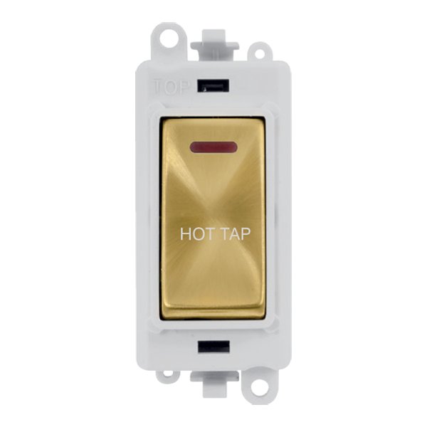 Click GridPro 20Ax Double Pole Switch With Led Module Polar White Satin Brass Hot Tap