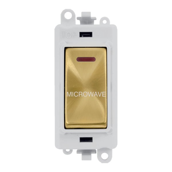 Click GridPro 20Ax Double Pole Switch With Led Module Polar White Satin Brass Microwave