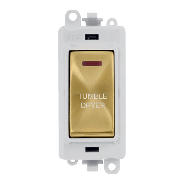 Click GridPro 20Ax Double Pole Switch With Led Module Polar White Satin Brass Tumble Dryer