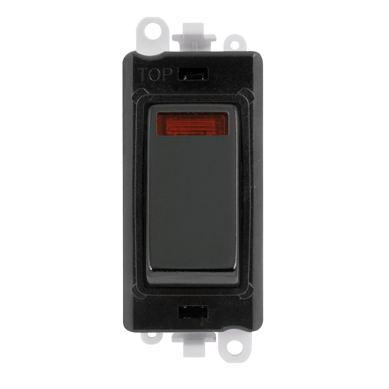 Click GridPro 20Ax Double Pole Switch With Neon Module Black Black Nickel