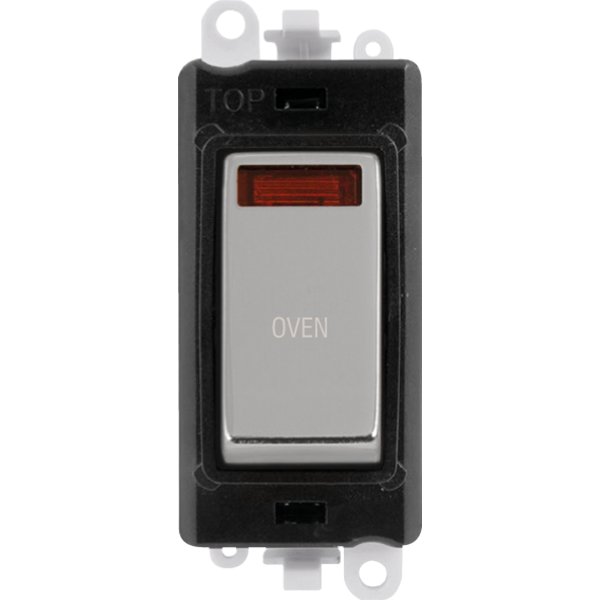 Click GridPro 20Ax Double Pole Switch With Neon Module Black Polished Chrome Oven