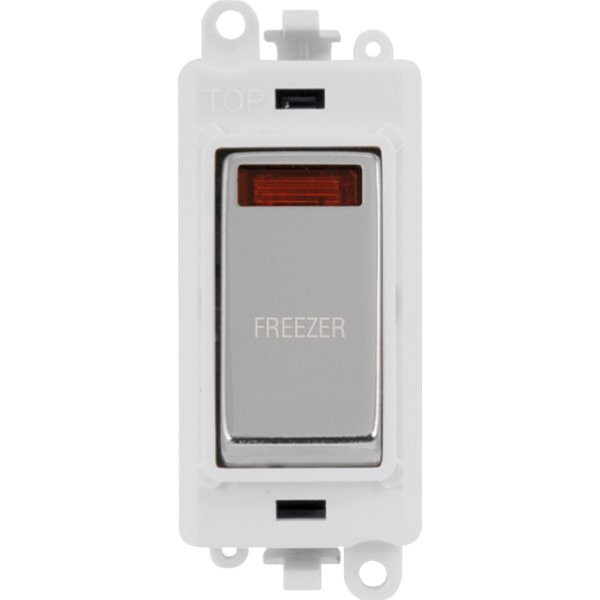 Click GridPro 20Ax Double Pole Switch With Neon Module Polar White Polished Chrome Freezer