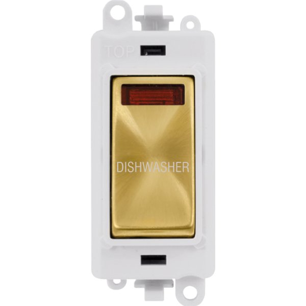 Click GridPro 20Ax Double Pole Switch With Neon Module Polar White Satin Brass Dishwasher