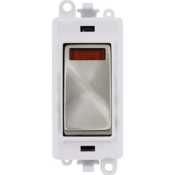 Click GridPro 20Ax Double Pole Switch With Neon Module Polar White Satin Chrome Hob