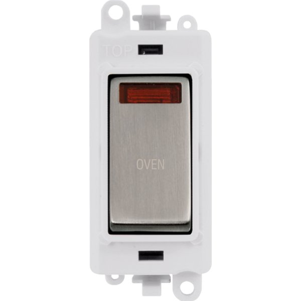 Click GridPro 20Ax Double Pole Switch With Neon Module Polar White Stainless Steel Oven