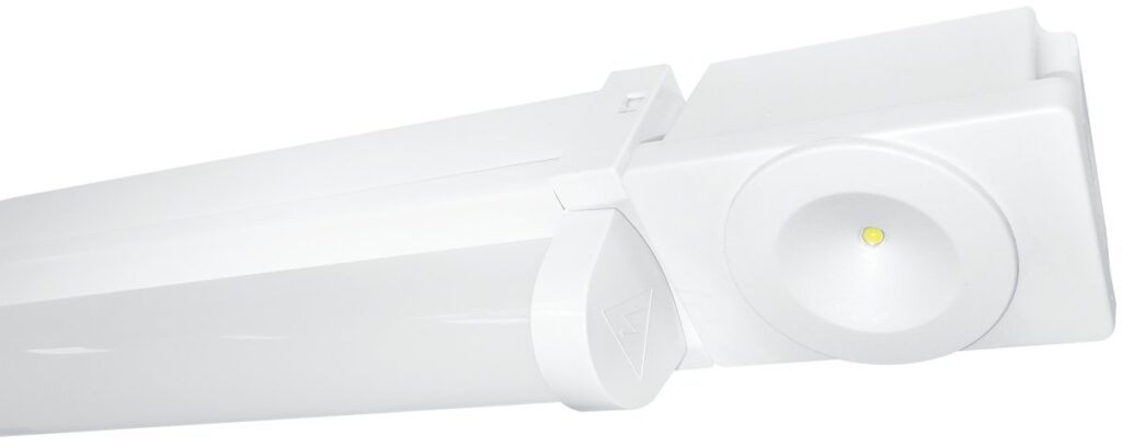 6ft LED highly efficient traditional style batten fixture, slim profile design with even light distribution, front diffuser and end caps removable to allow for easy wiring at either end of the batten or Besa mounting from the rear of the fitting, available in both standard and high output mode to suit different ceiling heights and task requirements, comes complete with bolt on Emergency downlight attached at the end of the fitting