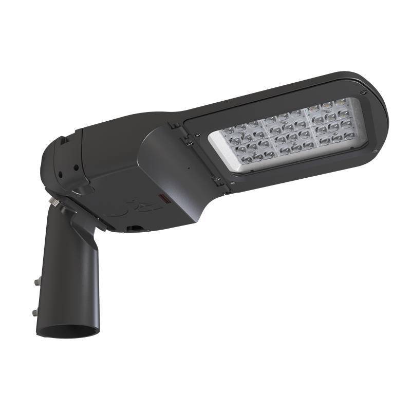 Modern die-cast aluminium street light with selectable CCT between 3000K and 4000K and power selectable; offering a choice of up to 3 outputs, in one luminaire. 30? head tilt (15? up or down from horizontal) allows for a wider or more narrow light distribution.