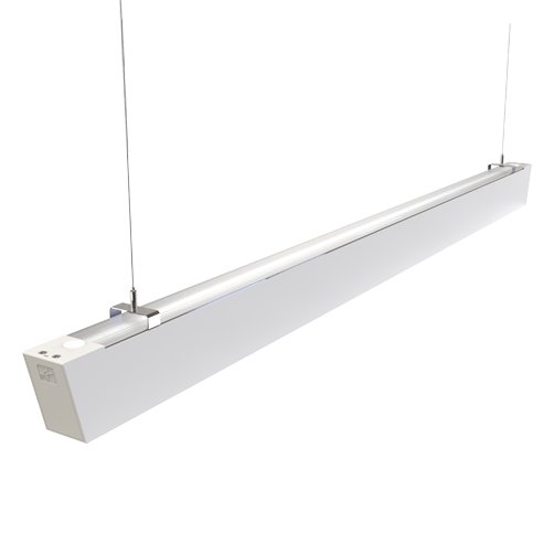 Architectural, slim profile, suspended bi-directional linear in white and aluminium finishes. Adjustable bracket allows installation flexibility with easy access to wiring. Supplied with 1.5m suspension kit and can be continuously mounted. Selectable CCT of 3000/4000K output. Ideal for office, retail, and education.