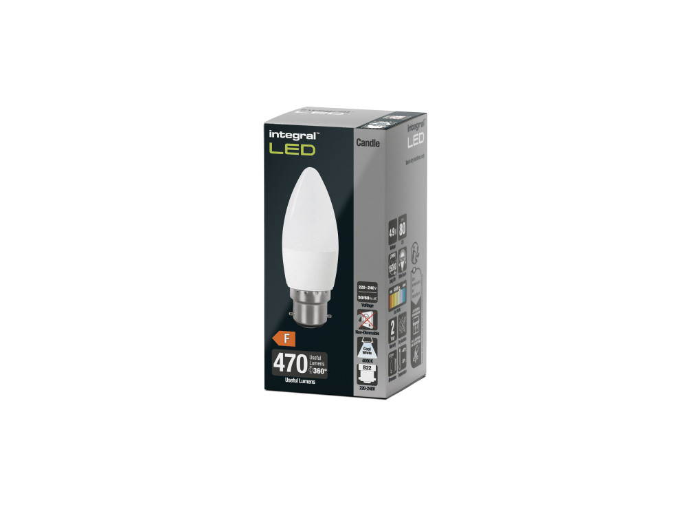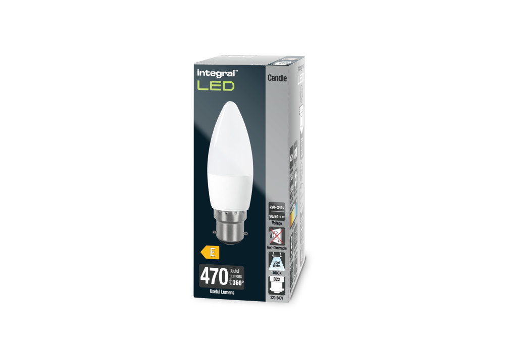 Integral Candle Bulb B22 470Lm 4.9W 4000K Non-Dimm 250 Beam Frosted