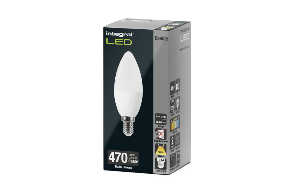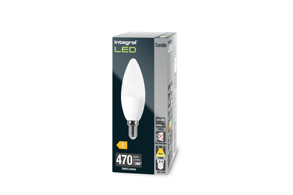 Integral Candle Bulb E14 470Lm 4.9W 2700K Non-Dimm 250 Beam Frosted
