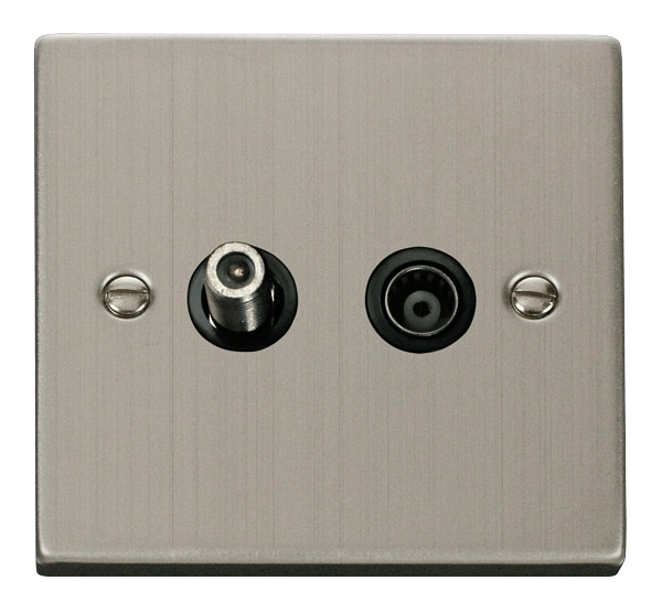 Click Deco 1 Gang Satellite & Isolated Coaxial Socket Outlet Black