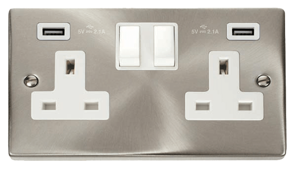 Click Deco 13A 2 Gang Switched Socket With Twin 2.1A Usb Outlets (4.2A) (Twin Earth)