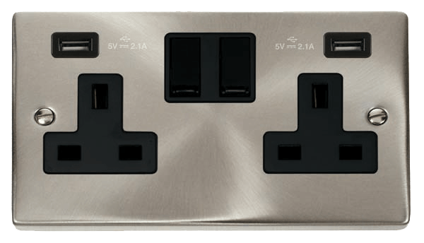 Click Deco 13A 2 Gang Switched Socket With Twin 2.1A Usb Outlets (4.2A) (Twin Earth)