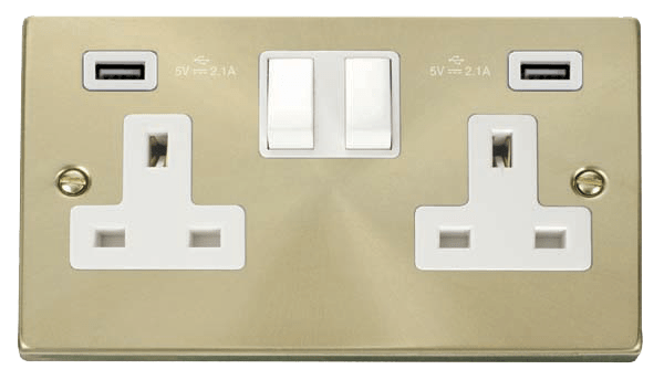 Click Deco 13A 2 Gang Switched Socket With Twin 2.1A Usb Outlets (4.2A) (Twin Earth)