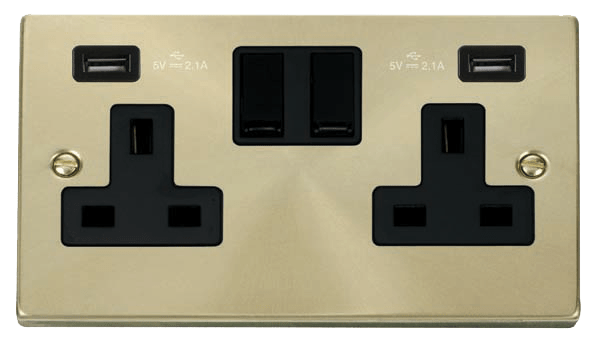 Click Deco 13A 2 Gang Switched Socket With Twin 2.1A Usb Outlets (4.2A) (Twin Earth)
