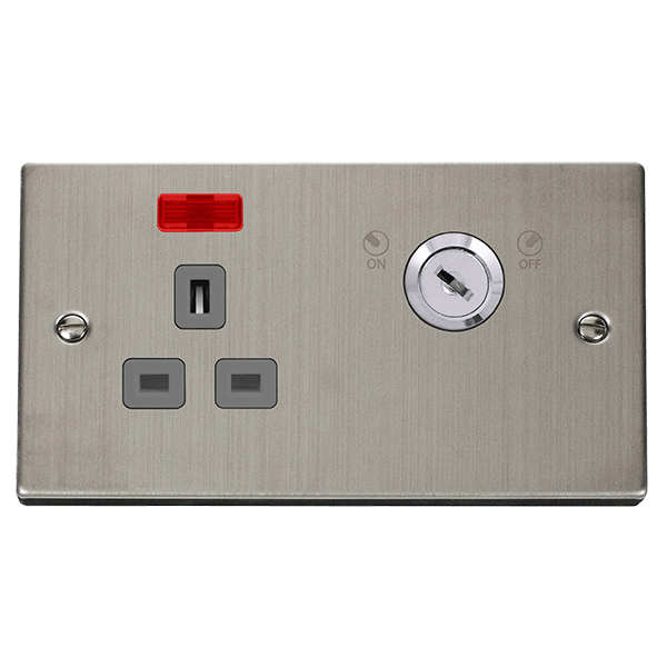Click Deco 13A Ingot 1 Gang Double Pole Key Lockable Switched Socket With Neon (Double Plate)