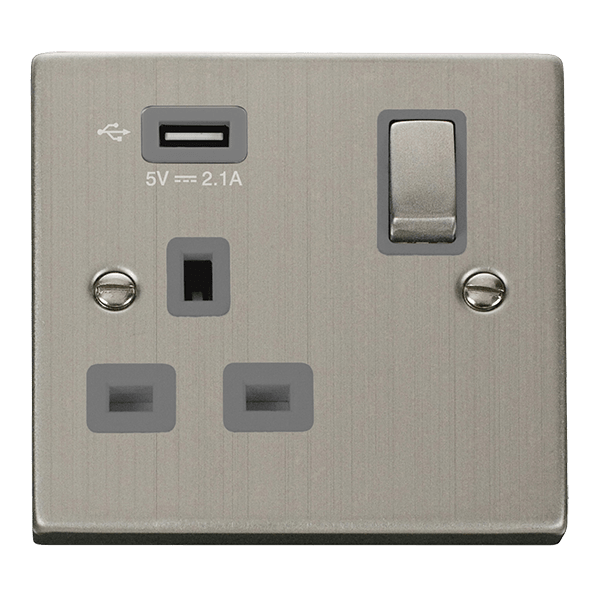 Click Deco 13A Ingot 1 Gang Switched Socket Outlet With Single 2.1A Usb Outlet