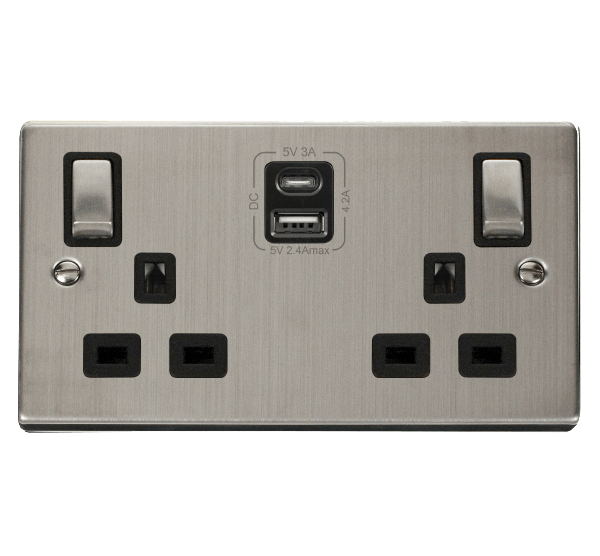Click Deco 2G 13A Switch Skt 4.2A A&C Usb Ingot Vpss Bk