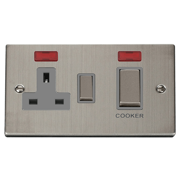 Click Deco 50A Ingot 2 Gang Double Pole Switch With 13A Double Pole Switched Socket Outlet & Neons