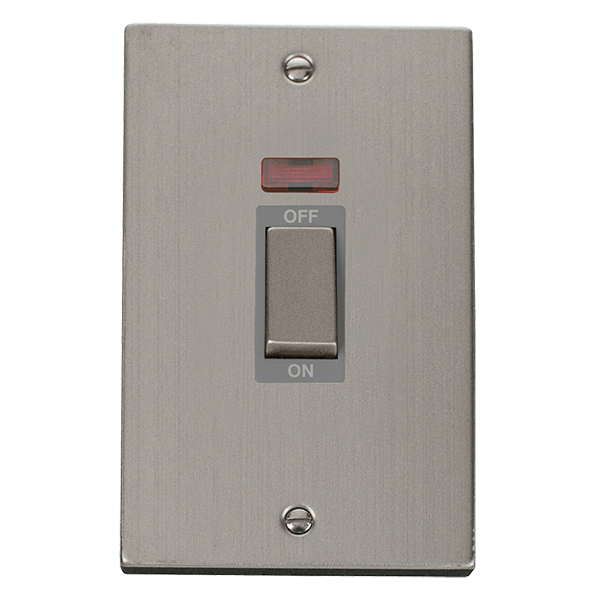 Click Deco 50A Ingot 2 Gang (Vertica) Double Pole Plate Switch With Neon