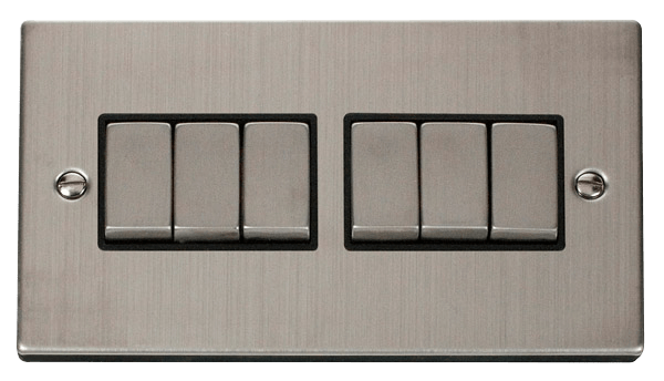 Click Deco 6 Gang 2 Way Ingot 10Ax Switch Black