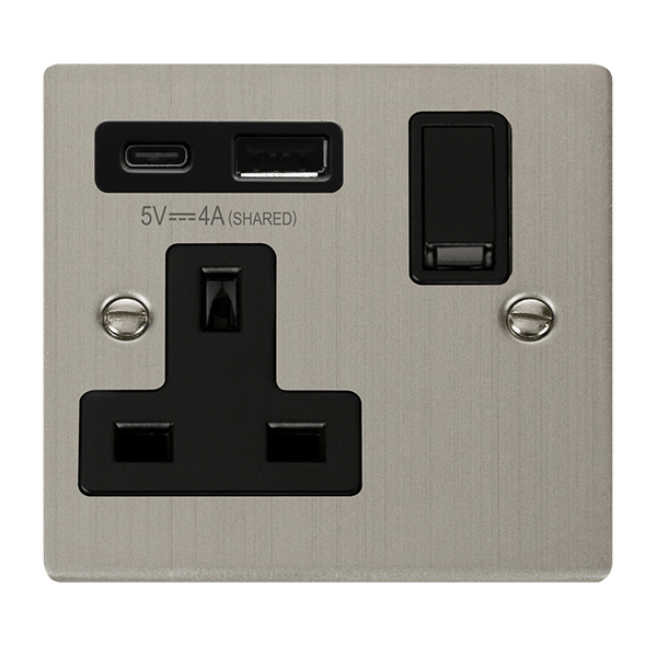 Click Deco Deco Non Ingot 13A 1 Gang Switched Safety Shutter Socket Outlet With Type A & C Usb (4A) Outlets