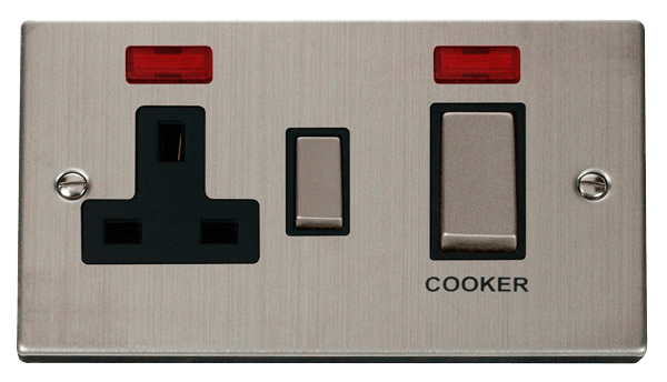 Click Deco Ingot 45A Dp Switch 13A Switched Socket & Neons (2) Black