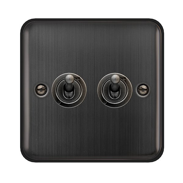Click Deco Plus 10Ax 2 Gang 2 Way Toggle Plate Switch Matt Bronze