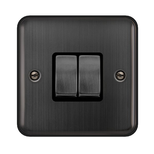 Click Deco Plus 10Ax Ingot 2 Gang 2 Way Plate Switch Matt Bronze Black Insert