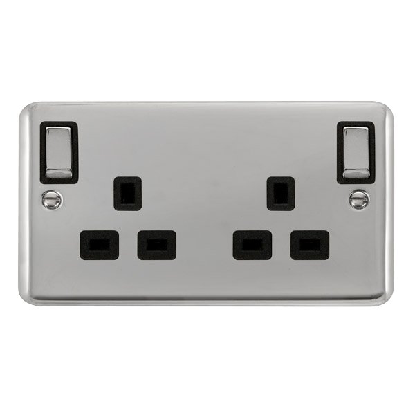 Click Deco Plus 13A 2Gang Outboard Switch Skt Dp Ch Bk