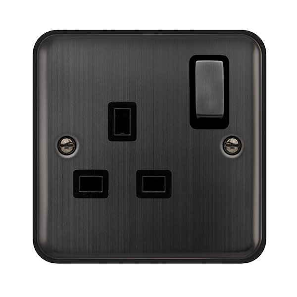 Click Deco Plus 13A Ingot 1 Gang Double Pole Switched Socket Outlet Matt Bronze Black Insert