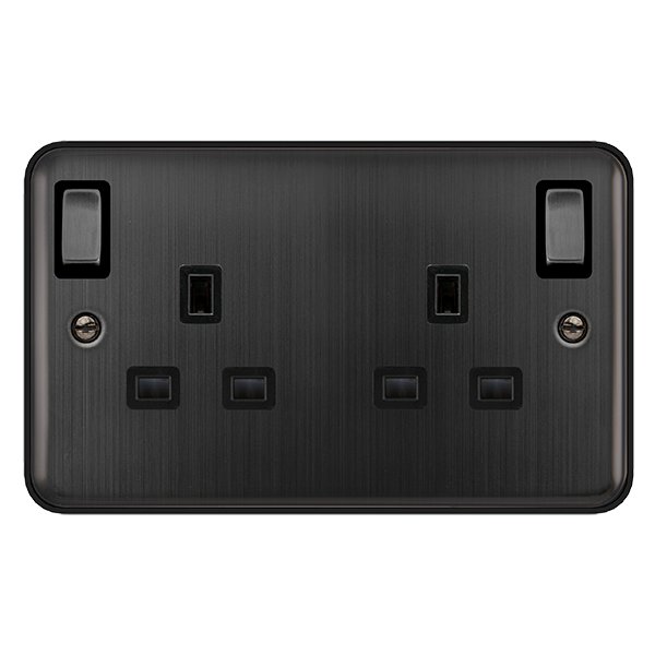 Click Deco Plus 13A Ingot 2 Gang Dp Outboard Switched Socket Matt Bronze Black Insert