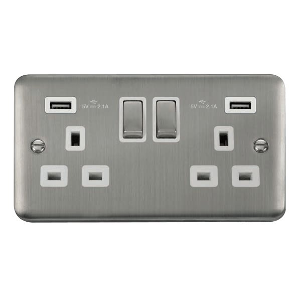 Click Deco Plus 13A Ingot 2 Gang Switched Socket With Twin 2.1A Usb Outlets (4.2A) (Twin Earth)