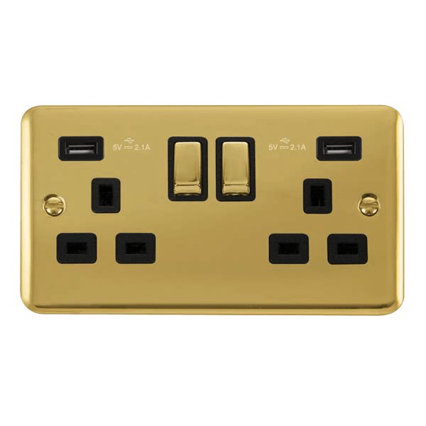 Click Deco Plus 13A Ingot 2 Gang Switched Socket With Twin 2.1A Usb Outlets (4.2A) (Twin Earth)