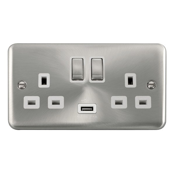 Click Deco Plus 13A Ingot 2 Gang Switched Sockets With 2.1A Usb Outlet (Twin Earth)