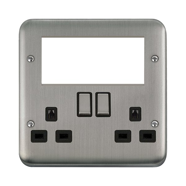 Click Deco Plus 2 Gang 3 Pin Safety Shutter Switched Socket With Quad New Media Apertures