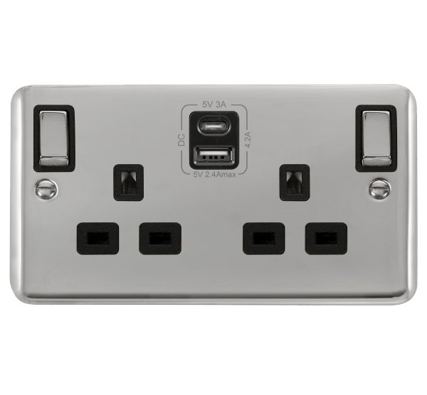 Click Deco Plus 2G 13A Switch Skt 4.2A A&C Usb Ingot Dpch Bk