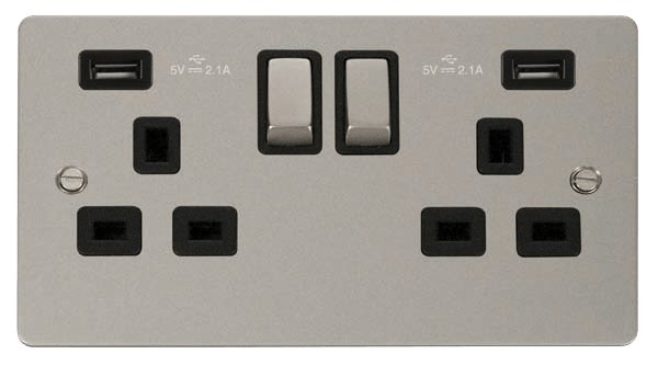Click Define 13A Ingot 2 Gang Switched Socket With Twin 2.1A Usb Outlets (4.2A) (Twin Earth)