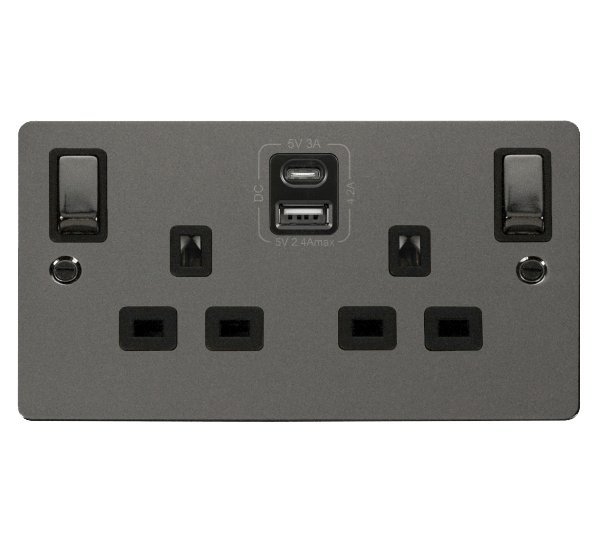 Click Define 2G 13A Switch Skt 4.2A A&C Usb Ingot Fpbn Bk