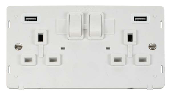 Click Definity 13A 2 Gang Switched Socket With Twin 2.1A Usb Outlets (4.2A) (Twin Earth) Insert