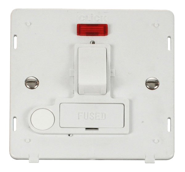 Click Definity 13A Fused Switched Conn. Unit With Flex Outlet & Neon Insert White